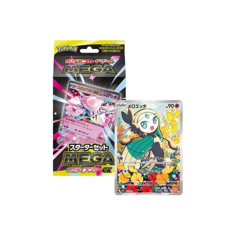 Oplev elegance og styrke med Mega Diancie ex Battle Deck (mBD) – et komplet kampklart deck fra Starter Set Mega-serien. Dette deck blev lanceret i Japan i september 2025 og indeholder en smuk lineup af Fairy- og Psychic-type Pokémon med Mega Diancie ex som hovedkort.